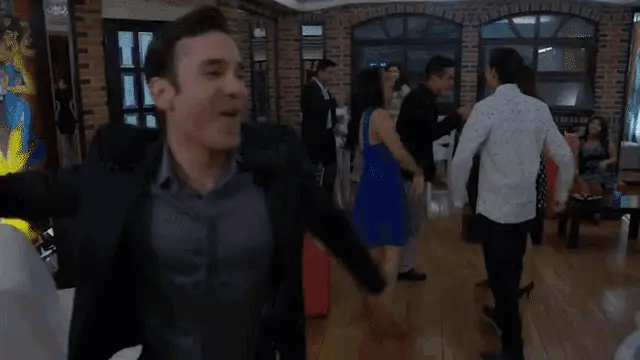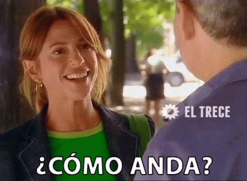 Claudia Fontán smiles and greets someone with "¿Cómo Anda?" in a scene from the Argentine show Son Amores.