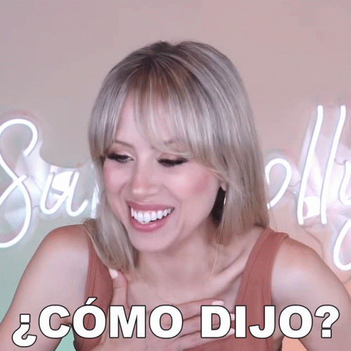 Superholly reacts with a surprised smile, asking '¿Cómo Dijo?' in front of a neon sign.