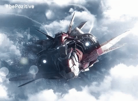 VFX breakdown showing the compositing process of a futuristic spaceship flying over a city, including matte painting and CG render.