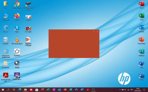PowerPoint application starting up on a Windows 10 desktop with an HP logo, showing various desktop icons.