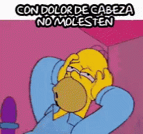 Homer Simpson suffering from a headache, asking not to be disturbed.