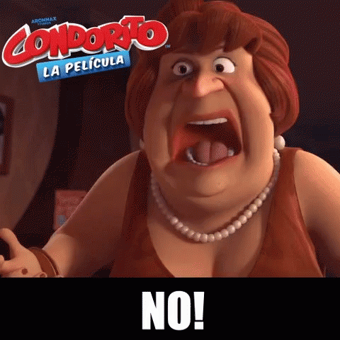 A female character from Condorito La PelĂcula animated movie emphatically shouts "NO!".