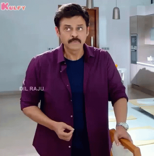 Venkatesh Daggubati looks confused and surprised, exclaiming 'I Can't Understand' in a purple shirt.