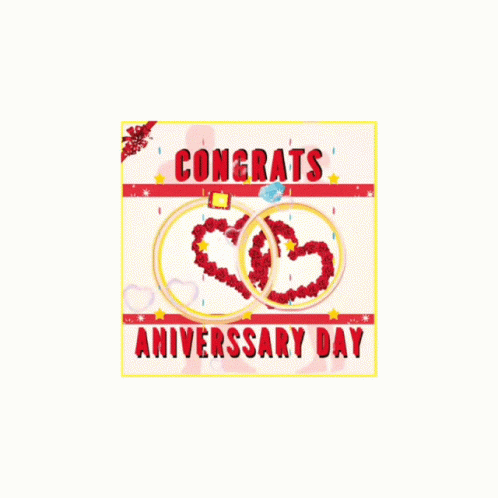 A celebratory graphic for an anniversary, featuring two wedding rings and hearts, with 'Congrats Anniversary Day' text.