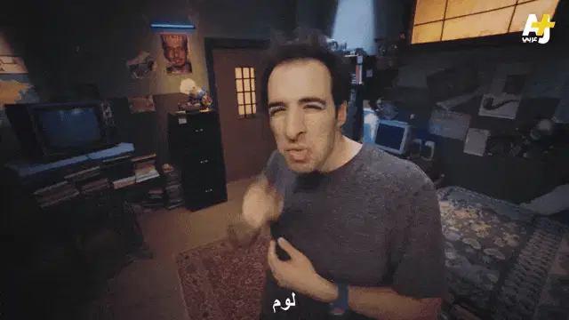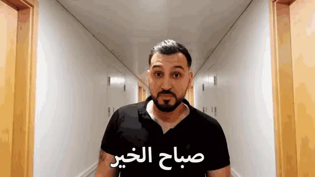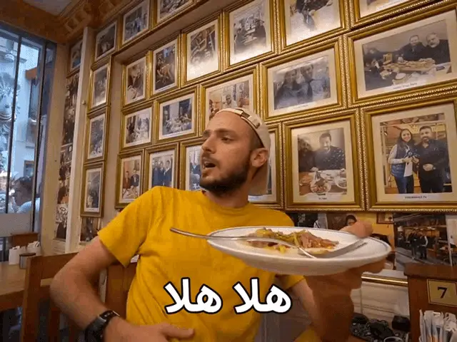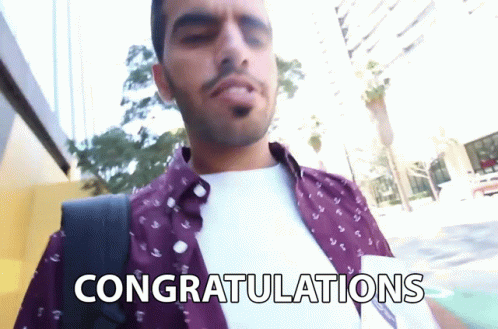 Abdulaziz Abo Reja, wearing a purple shirt, enthusiastically says 'Congratulations!' on a city street.