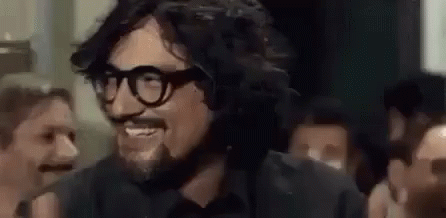 Alessandro Borghese smiles and claps, celebrating a graduation with congratulations.