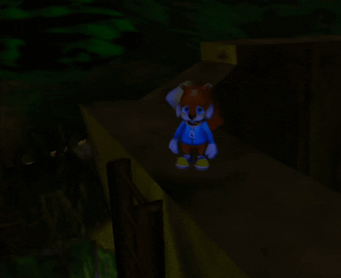 Conker The Squirrel from Conker's Bad Fur Day standing in a dark, eerie setting.
