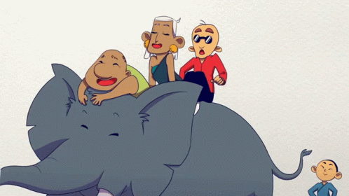 a group of people are sitting on top of an elephant