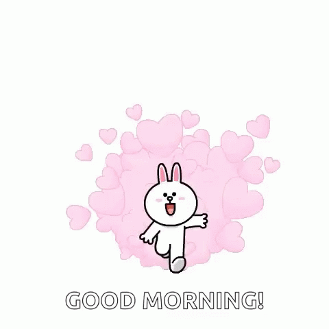 Cony Brown, the cartoon bunny, blows kisses and wishes 'Good Morning!' with hearts flying around.