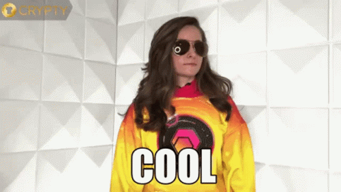 A woman, possibly Cryptygirl, wearing sunglasses and a red sweater with the word 'COOL' prominently displayed, poses for the camera.