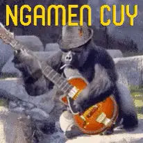 A cartoon monkey with a bored expression eats a banana, accompanied by the Indonesian word 'NYIMAK'.