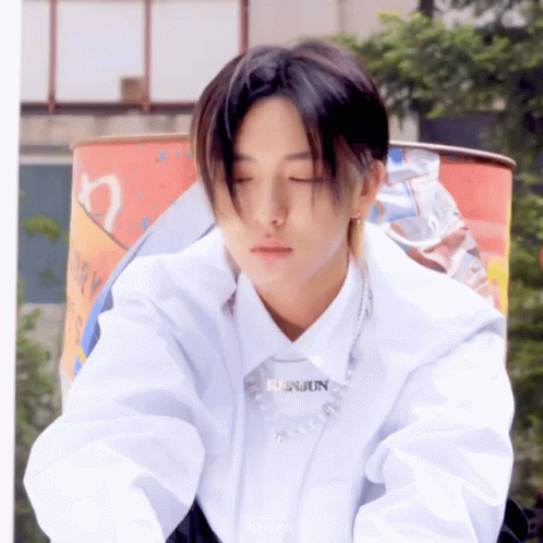 NCT Dream's Renjun (Huang Renjun) in a white shirt with his name, looking cool and stylish.