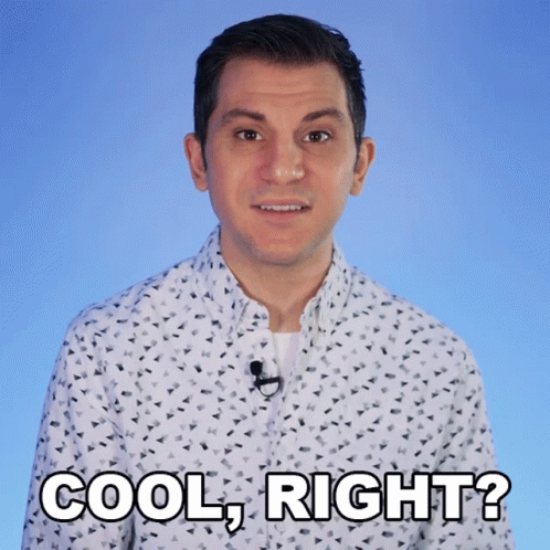 Shane Luis asks "Cool, Right?" while speaking to the camera in a white patterned shirt.