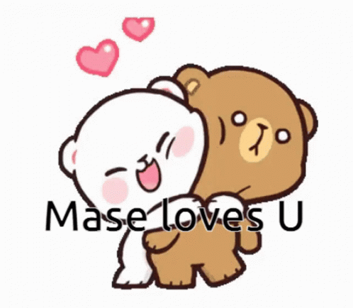 Two adorable cartoon bears hugging, with the sweet message 'Mase loves U' displayed.