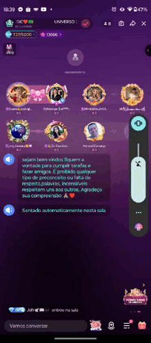 A chat room displaying a welcome message encouraging respect, friendship, and task completion, with rules against prejudice.