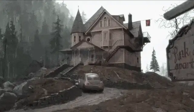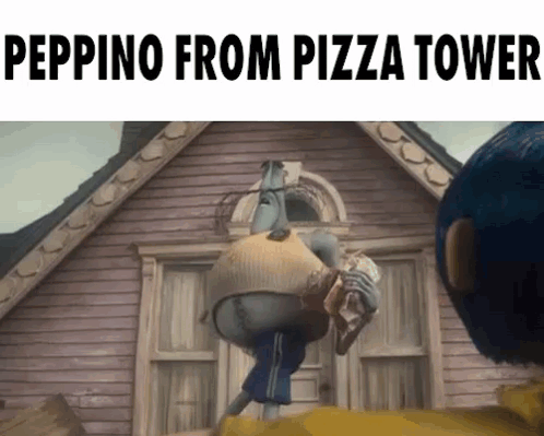 a picture of peppino from pizza tower standing in front of a building