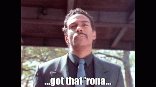 Doctor Ice, wearing a leather jacket and vest, says 'got that 'rona' in a park setting.