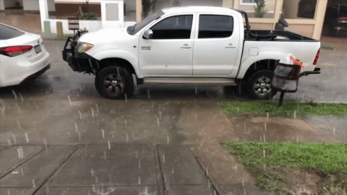 A person runs quickly through heavy rain to avoid getting soaked, seeking shelter indoors.