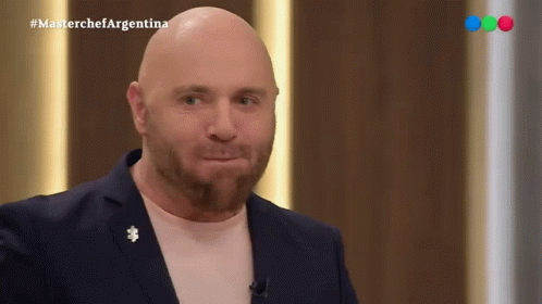 Germán Martitegui makes a 'cut it' gesture on Masterchef Argentina, then smiles and nods.