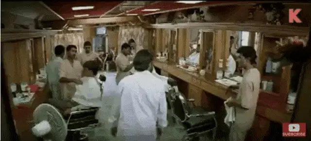 Diana Estrada smiles as she gives a man a haircut with scissors, carefully trimming his hair.