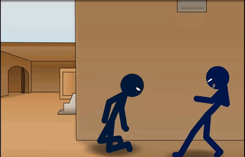 Animated stick figures in a Counter-Strike De Dust2 scene, one kneeling with a shotgun, the other standing with an SMG, with 'FREEKILL' and 'PSYCHO' text.