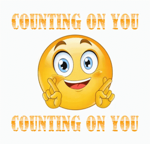 A cheerful yellow emoji with fingers crossed, conveying hope and the message 'Counting On You'.