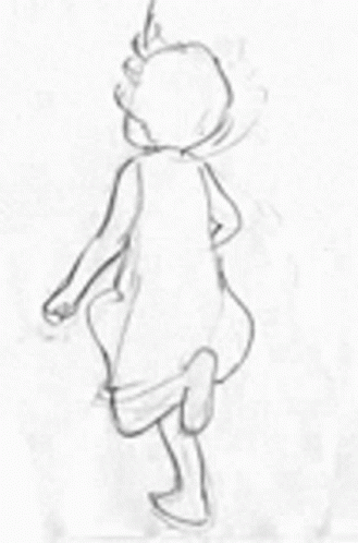 A simple black and white sketch depicting a person in motion, appearing to be running or walking.