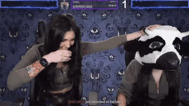 A person in a cow-themed hat stands next to a large pixel art hamburger in a vibrant pixelated landscape.