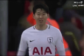 Son Heung-min celebrates in his white Tottenham Hotspur jersey with AIA sponsor.