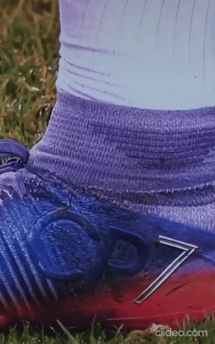 Close-up of Cristiano Ronaldo's iconic CR7 football boots, featuring the number 7 and Adidas socks.