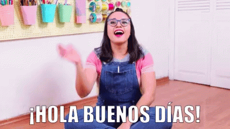 Craftingeek greets viewers with '¡Hola Buenos Días!' while waving and smiling from her craft room.
