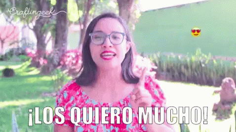 Craftingeek expresses her love to viewers, saying '¡Los Quiero Mucho!' with a heartfelt gesture.