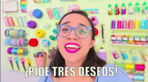 Craftingeek, wearing glasses and pink lipstick, smiles and asks viewers to make three wishes, showing three fingers.