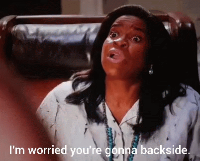 Rebecca Bunch and another character from Crazy Ex-Girlfriend discuss going backwards on a slide, referencing 'backside'.