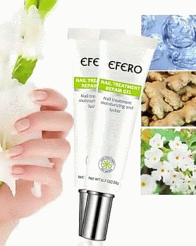 Before and after comparison of nails treated with a repair cream, showing improvement from fungus.