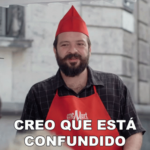 Miguel Burra, wearing a red apron and hat, smiles as the caption 'I think he is confused' appears.