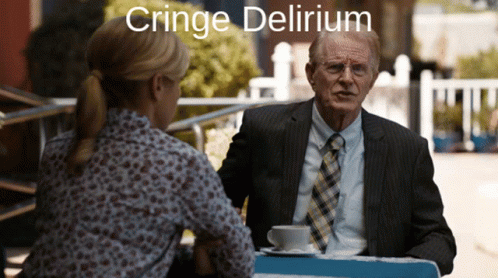 Cliff Main experiences a moment of 'Cringe Delirium' while talking to a woman at an outdoor cafe.