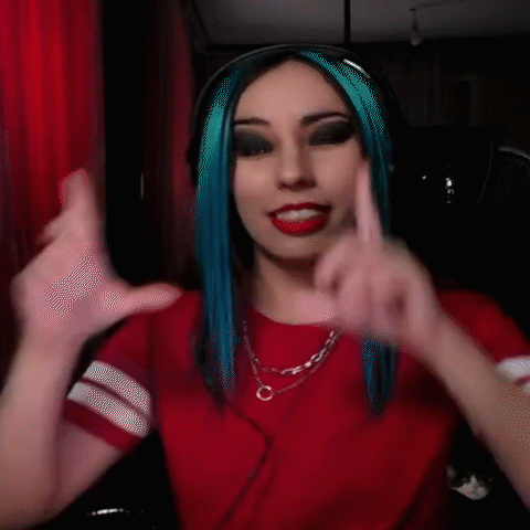 Woman with blue hair making a hand gesture, captioned 'It Goes To My Cringe Collection'.