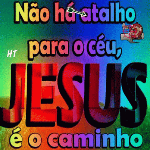 Colorful animated graphic stating 'There is no shortcut to heaven, Jesus is the way' in Portuguese.