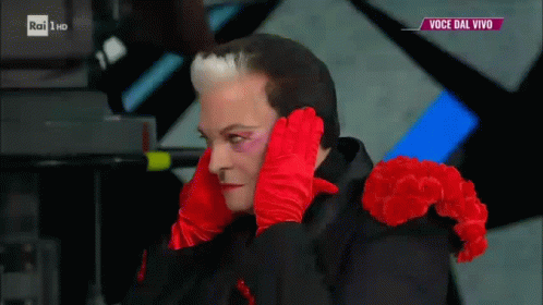 Cristiano Malgioglio covers his ears with red gloves during Tale E Quale Show.