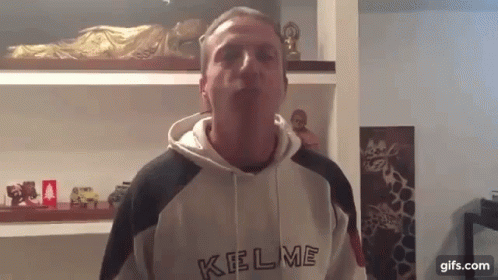 Cristobal Soria gives a thumbs up and speaks enthusiastically, wearing a Kelme hoodie.