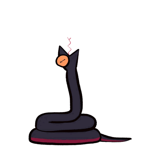 Crowley from Good Omens, depicted as a cartoon snake, moves with 'aaaa' text.