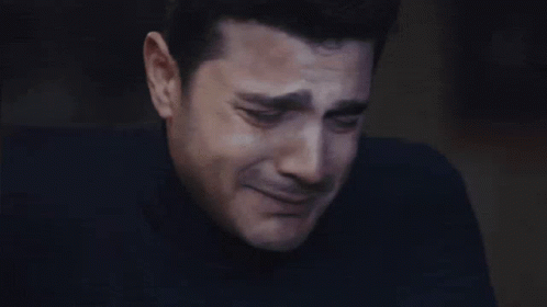 Turkish actor Burak Sevinç cries intensely, covering his face with his hands in an emotional scene.