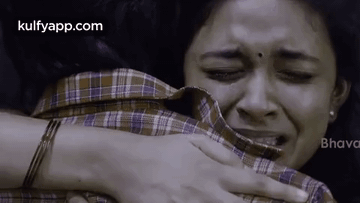 Keerthy Suresh in an emotional scene, crying and hugging Alukiruth. A poignant moment from a Tamil film.