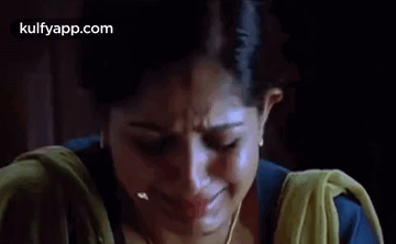 Indian actress Kavya Madhavan is seen crying intensely, her face filled with pain and sadness.