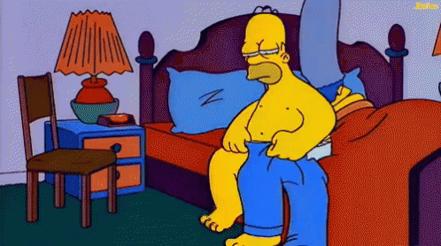 Homer Simpson struggles to wake up and needs coffee after watching too many Netflix episodes.