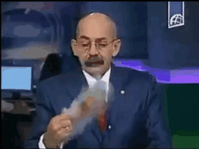 Doña Magda (Macaria) complains about the broken air conditioning while Arturo (Moises Suarez) sprays her with water in a scene from Vecinos.