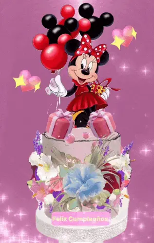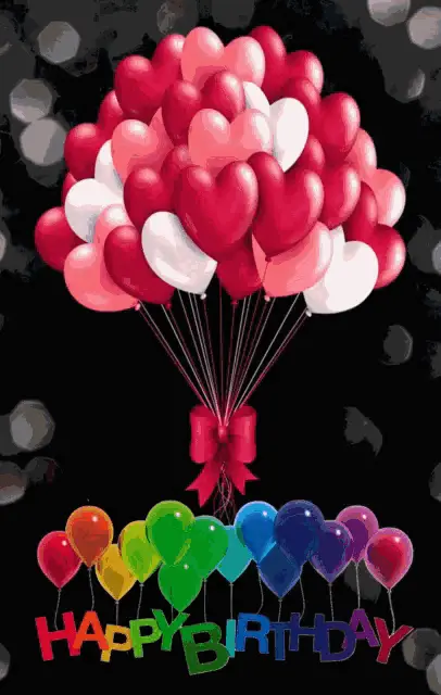 Vibrant birthday cake with lit candles, sparkling fireworks, and 'Happy Birthday' message.