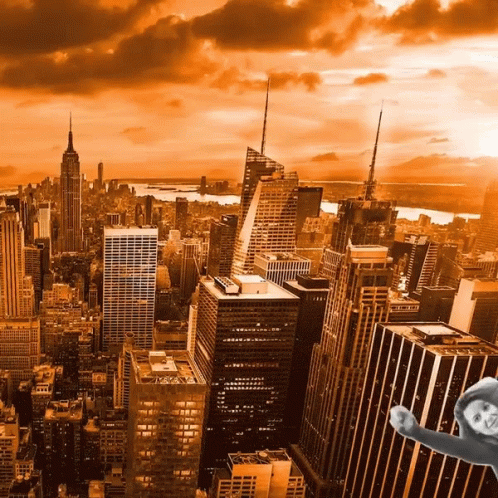 Super Girl flying over a city skyline during her Cursinho Prep Course.