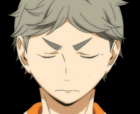 Haikyuu's Sugawara with a concerned expression, eyes closed, appearing to sigh or think deeply.